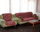 Номер 2-х местный. Две комнаты, двуспальная кровать, шкаф, диван, телевизор, сплит-система, чайник, раковина с горячей и холодной водой, холодильник.