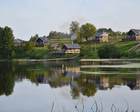 В самой деревне Ежезеро на развилке нужно повернуть направо. Гостевая деревня «Ежезеро» расположена на берегу озера, слева от дороги.