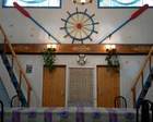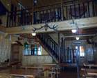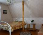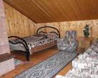 Одноэтажный коттедж, стилизованный под корабль, с мезонином, просторный холл с камином и балконами. В холле большой стол со скамейками на 20 персон, 5 комнат по 4 кровати. Кухня посудой не укомплектована. Душевая кабина, санузел. Наличие постельного белья. Возле дома столы со скамейками, парковка.