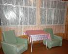 Отдельно стоящий одноэтажный домик, деревенского типа, 3 подъезда: гостиные № 1, 2 и 3. Во всех гостиных имеется постельное белье. Частичные удобства: умывальник с электроподогревом, деревянный туалет на веранде. Отопление печное + электрообогреватели. Возле дома столы со скамейками, парковка.