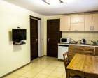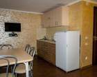 В номере с отдельным входом: прихожая, кухня-гостиная, 2 спальни, сан.узел с душевой кабиной. В просторной гостиной обеденная зона (стол, стулья), диван (раскладывается под спальное место), ТВ. Кухня оборудована холодильником, микроволновой печью, электрочайником, необходимым набором посуды. В каждой комнате 2 односпальные кровати, которые легко трансформируются в двуспальную кровать.