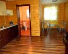 Двухэтажный отдельно стоящий благоустроенный бревенчатый дом. На первой этаже гостиная(обеденная зона (стол + стулья), спутниковое ТВ ), кухня, оборудованная холодильником, микроволновой печью, электрочайником, необходимым набором посуды, санузел с душевой кабиной, русская печь. На втором этаже 4 спальни. В комнате №1 – одна двуспальная кровать, в комнате №2,№3, №4 по две односпальных кровати.