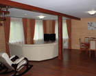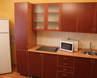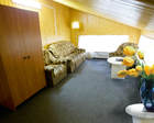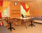 4 спальни. 1 этаж: гостиная с мягкой мебелью и телевизором, бильярд, кухня (холодильник, микроволновая печь, эл. плита ,набор посуды). 2 этаж: две спальни с двуспальной кроватью (мягкая мебель, холодильник, санузел с душевой кабиной при каждой спальне), две спальни с двумя одноместными кроватями (холодильник), санузел.
