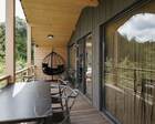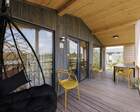 Первое, что задаёт тон месту, — композиция участка и построек. Деревянные и каменные формы соседствуют с зелёными площадками и прогулочными тропами, так что видовые точки и зоны для активностей выстроены естественно. Панорамные окна в корпусах и террасы у коттеджей сделаны так, чтобы ориентировать гостя на внешний мир: рассветы над деревьями, вечерние звезды и зелень становятся главным «интерьером» отдыха. Архитектура здесь сдержанная и утилитарная — без лишней аффектации, но с заметной заботой о качестве материалов и эргономике пространства.