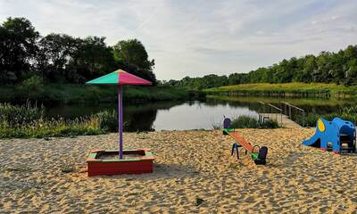 - На территории также есть оборудованная пляжная зона, которая подойдёт для отдыха с детьми и тех, кто не участвует в рыбалке.
