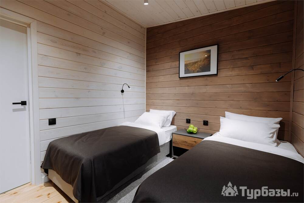 Комплекс состоит из индивидуальных вилл — светлых, просторных зданий с большими окнами и открытыми террасами, откуда открывается вид на водную гладь или зелёные зоны. В оформлении всех домиков используют натуральные материалы и спокойные тона, что создаёт впечатление уюта и целостности с природой. Каждый дом спроектирован с учётом комфортного размещения гостей: здесь есть удобные зоны для сна и отдыха, современная кухня для самостоятельного приготовления пищи, гостиная с техникой для развлечений и терраса, пригодная для утреннего кофе или вечерних бесед.