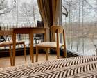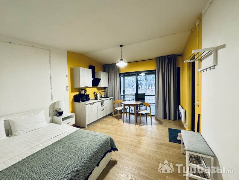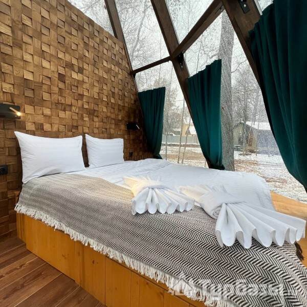 Территория эко-отеля благоустроена и продумана для активного и спокойного отдыха: вдоль реки оборудованы пляжные зоны с шезлонгами и пологим входом в воду, где гости могут проводить тёплые летние дни, а летом доступны прогулки на сап-бордах и велосипеде. В высокий сезон действует гостевой билет на посещение пляжа и общей территории с включённой парковкой и зоной отдыха.