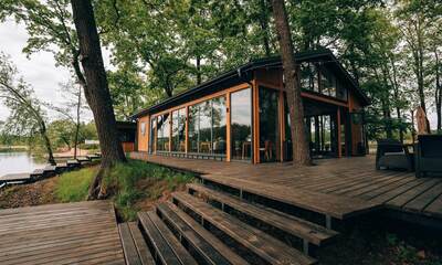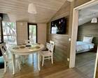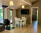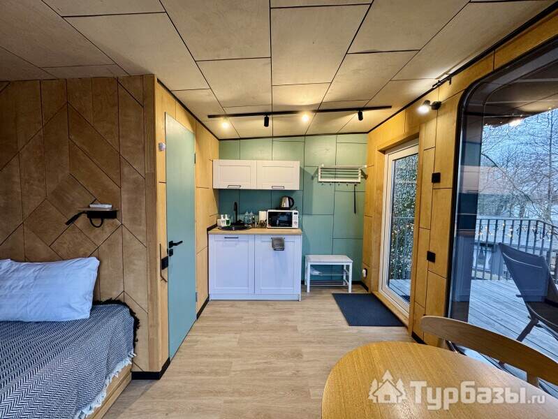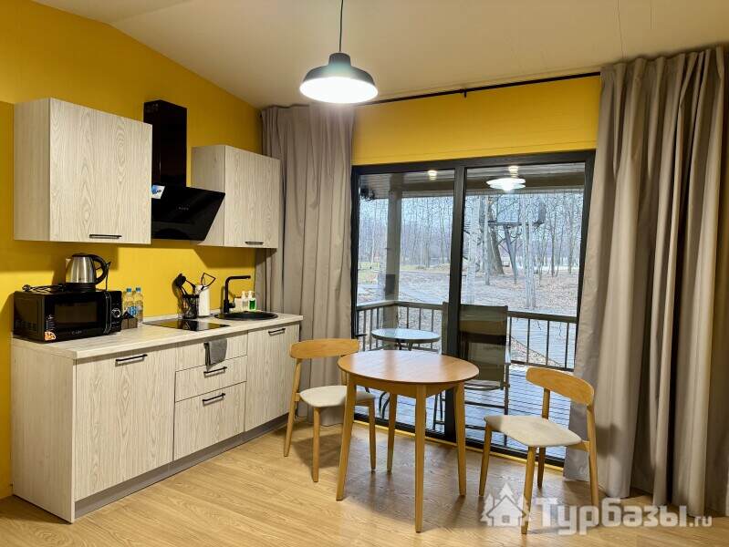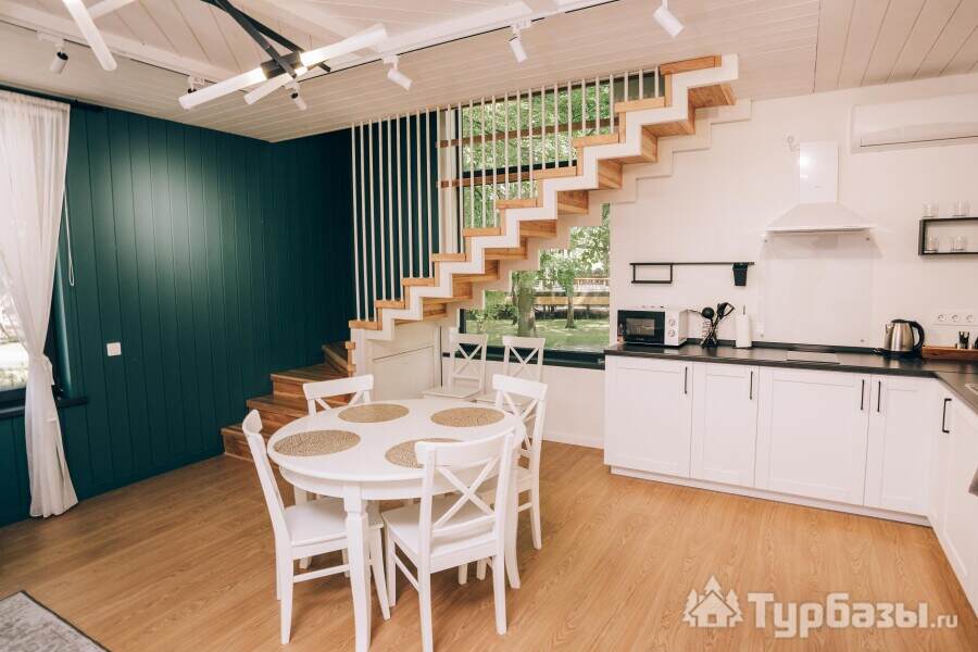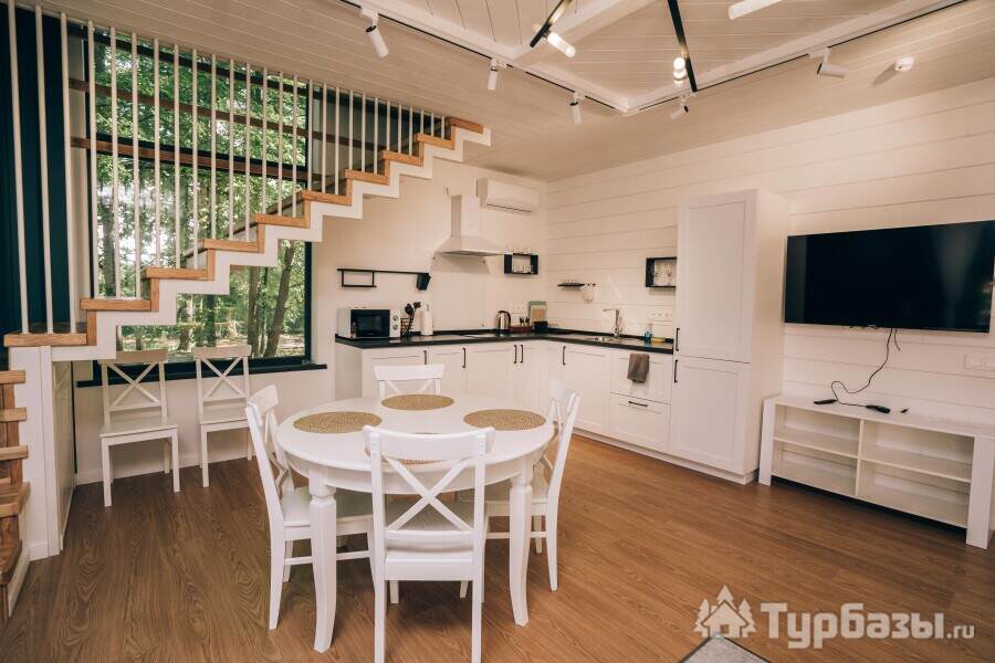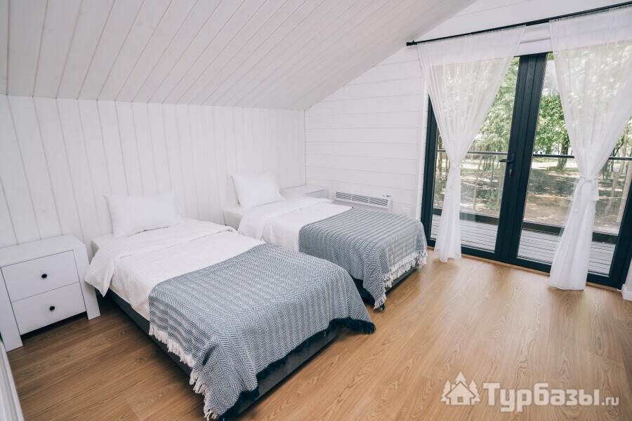 В основе комплекса — индивидуальные коттеджи различной вместимости: от компактных домиков для двоих до просторных семейных коттеджей с большими террасами. Жилые корпуса оформлены с заботой о функциональности и простоте, здесь есть всё, что нужно для отдыха: отдельные спальные зоны, оборудованные кухни и удобные гостиные. Большинство коттеджей выходит на реку или размещено так, чтобы обеспечить приватность в окружении зелёных насаждений.