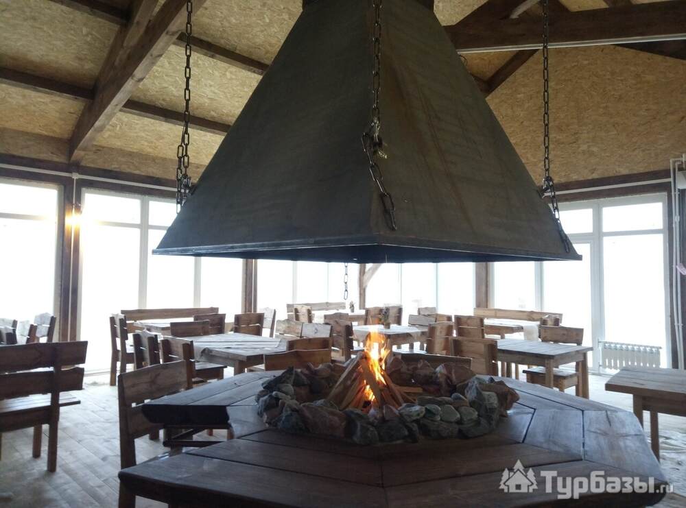 Для гостей работает панорамное кафе с очагом, где можно полноценно позавтракать, пообедать или провести вечер в тёплой и уютной обстановке с видом на окружающие пейзажи. Это место подходит как для ежедневного питания, так и для организации небольших застолий и встреч.