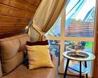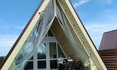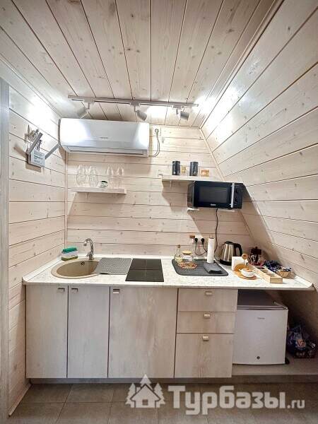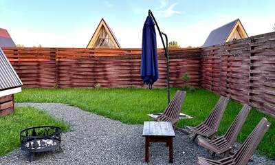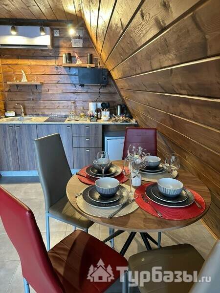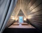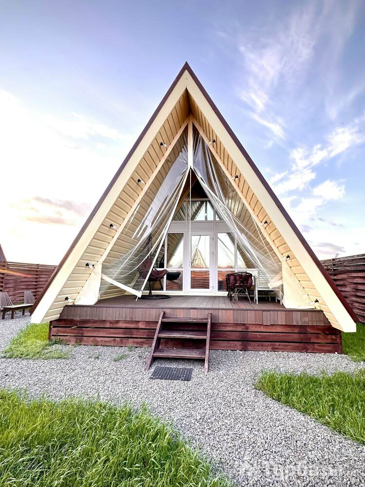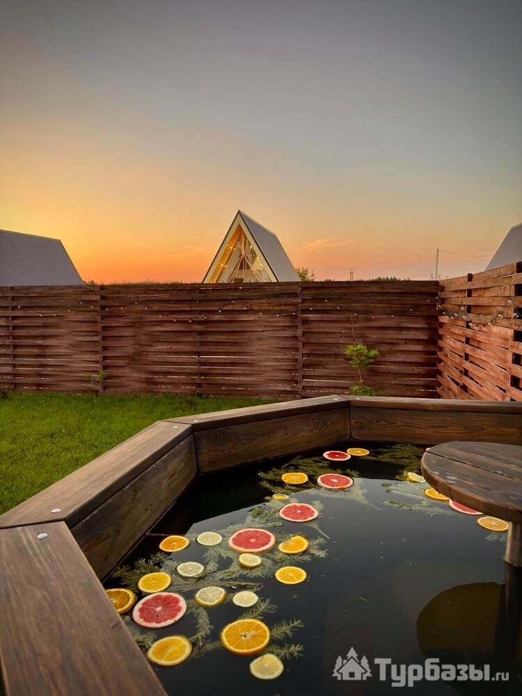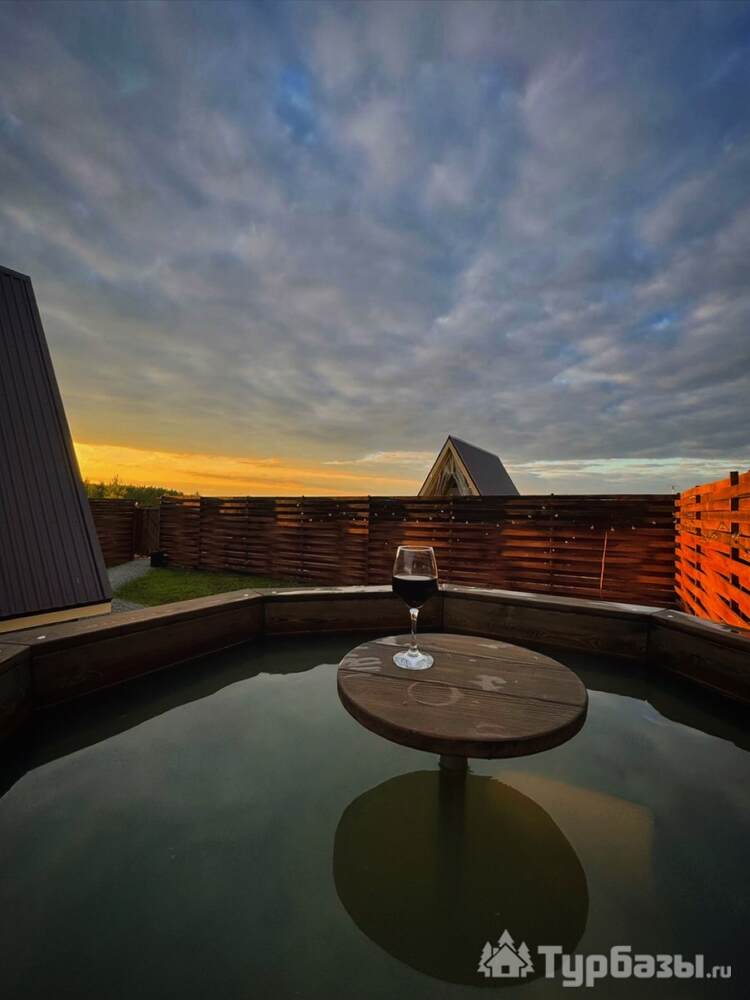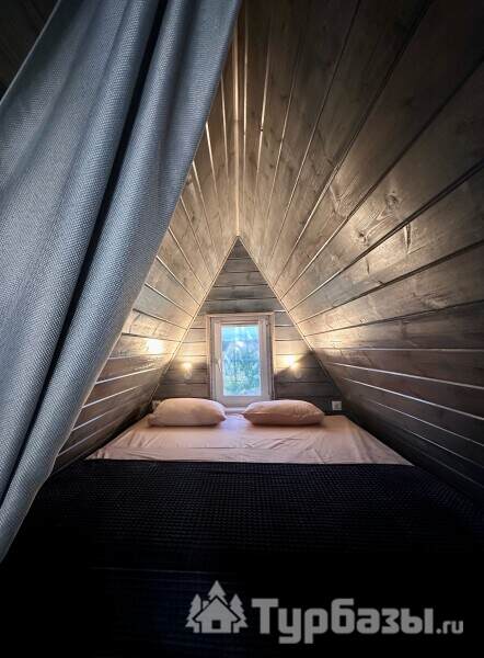 Архитектура и планировка домиков продуманы под идею тёплого уюта и визуальной связи с природой. A-Frame-корпуса с панорамными окнами дают ощущение простора и света: на нижнем уровне обычно расположена общая зона с кухней и местом для отдыха, а наверху — уютная спальня, где легко отдыхать от городской спешки. В одном из домиков предусмотрена джакузи, в нескольких — открытые чаны; в каждом — всё необходимое для комфортного проживания: тёплые полы, кухня с техникой, мягкая постель и чистые полотенца. Именно сочетание «загородного» формата и удобств «как дома» делает опыт одновременно расслабляющим и беспроблемным.