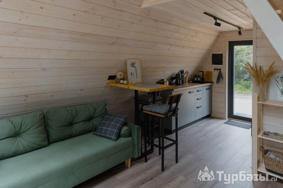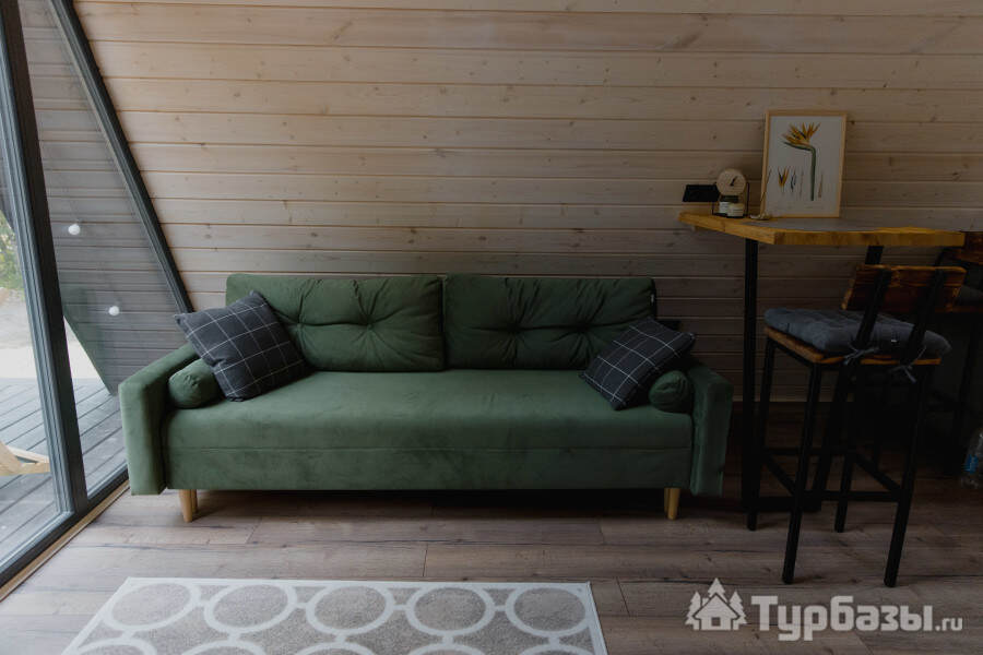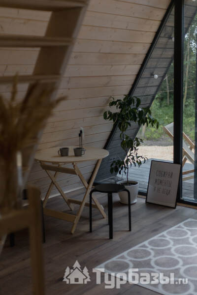 - A-Frame домики — уютные конструкции с панорамным остеклением, оборудованные всем необходимым для проживания до четырёх человек; в домиках есть собственная зона отдыха, мини-кухня с базовой техникой, санузел и удобные спальные места.