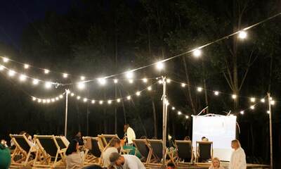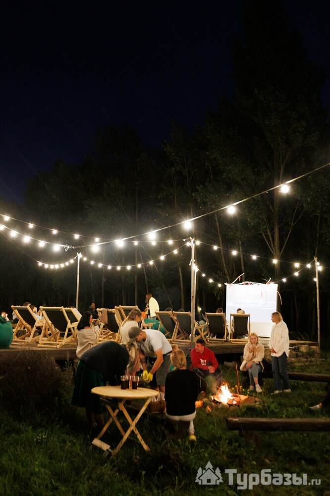 - Кинотеатр под открытым небом — показ фильмов на проекторе среди природы в тёплые ночи.