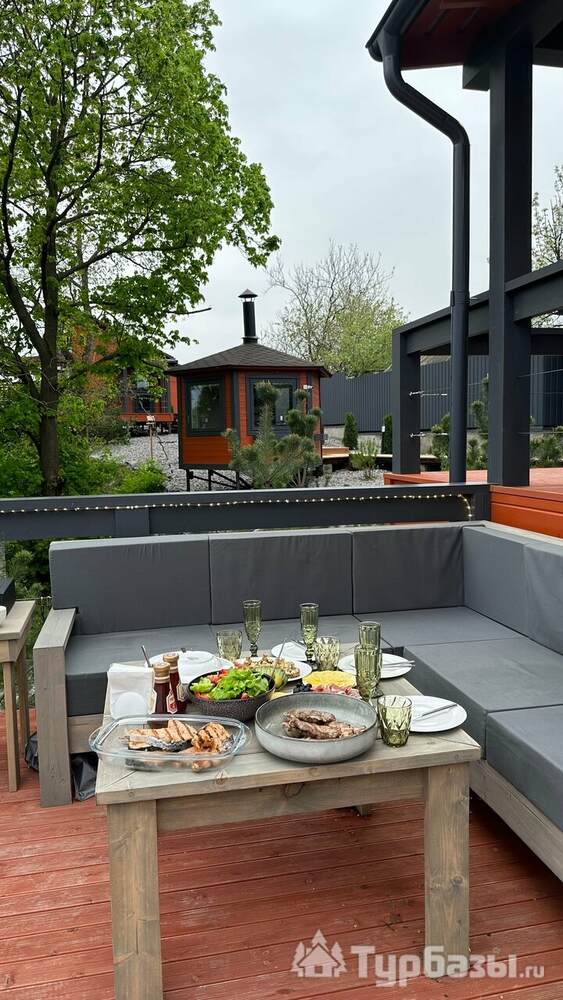 У каждого дома есть собственная терраса с мебелью и шезлонгами, где можно отдыхать на свежем воздухе. В тёплый сезон к зоне отдыха добавляется джакузи с гидромассажем на открытом воздухе, откуда открываются живописные виды на лес и речной ландшафт.