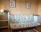 Площадь домиков 20 кв.м. В спальной комнате установлены 2-этажные кровати, в гостиной имеется диван. Его можно использовать в качестве дополнительного места для сна.