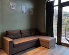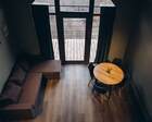 - Кухонный гарнитур, мини-холодильник, сенсорная индукционная плита, микроволновая печь, чайник и необходимая посуда. Также имеется обеденный стол, стулья и, конечно же, штопор.