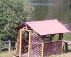 На участке - беседка, зона отдыха: мангал, беседка, качели, батут.