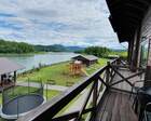 В каждом номере панорамное окно и есть балкон (на 2 этаже есть номера как с видом на Катунь, так и на сторону дороги, уточняйте у администратора).