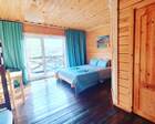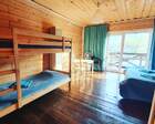 3) Номер на 2 этаже с балконом и видом на Катунь. В номере стоит двухспальная большая кровать и двухярусная кровать.