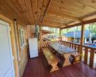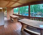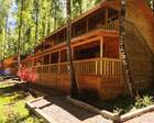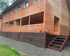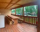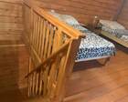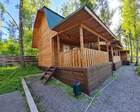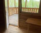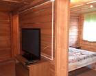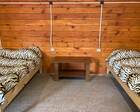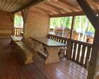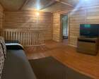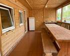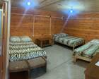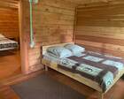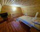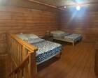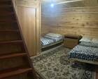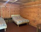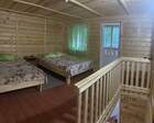 4-х комнатный номер в благоустроенном 2-х этажном доме из бруса. На 1 этаже: 2-х спальная кровать, тумба, стол, шкаф, санузел, душ. На 2 этаже: три комнаты: 1 - 2-х спальная кровать, тумба, стол. 2 - 2-х спальная кровать, тумба, стол. 3 – две 2-х-спальных кровати, тумбы, комод, ТВ. На веранде: стол, лавочки, холодильник.