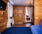 На территории комплекса есть русская баня на дровах и прорубь с ледяной водой. После таких развлечений постояльца предлагают расслабиться у камина и выпить горячего глинтвейна.