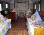 Размещение отдыхающих возможно в деревянных домиках, рассчитанных на 4-х человек, с возведенной рядом верандой, или в палатках. В уютных меблированных домиках есть необходимая бытовая техника (холодильник, телевизор), а также кондиционер и камин. На территории комплекса также имеются двух-, трех- и четырехместные вагончики для комфортного проживания гостей.