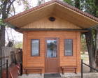 Гостевой дом - отдельностоящий здание. С фасада имеется летняя веранда со столиками и скамейками. Рассчитан на одновременный прием 6-8 человек.