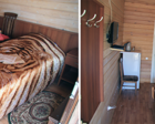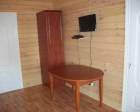 Номер «Люкс» в деревянном коттедже: 2 комнаты: гостиная - диван, кресло, шкаф, тумба для чемоданов, обеденный стол; спальня - 2 кровати, 2 прикроватные тумбочки, журнальный столик, настенное зеркало, плотяной шкаф, сплит-система; санузел (душевая кабина), холодильник, эл. чайник, посуда. За каждым номером закрепляется 1 лодка с егерем. Бензин в стоимость не входит и оплачивается отдельно по факту.