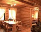 На территории 6 таких домиков. Уютный одноэтажный дом-сруб в русском стиле общей площадью 57 кв.м. Идеально подходит для небольшой компании или семьи из 4-х человек. Внутри: 2 спальни с кондиционерами (2 кр. + 2 кр.); кухня со всей необходимой утварью (есть плита) полностью оборудованная для самостоятельного приготовления пищи; столовая - гостиная с телевизором с приставкой "Триколор"; туалет, душ с гидромассажем. Возможно предоставление дополнительного спального места. К услугам проживающих - морозильный ларь для хранения рыбы. На территории имеется 6 домиков типа "Изба".
