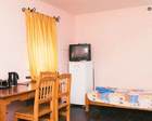 - мини-кухня (без плиты), объединенная с жилой комнатой (обеденный стол на 4 человека, холодильник с морозильной камерой);