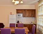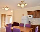 - Столовая зона на первом этаже ( кухонный гарнитур; стол + 6 стульев; холодильник; СВЧ печь; чайник)