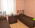 Большой двухкомнатный номер для 4 человек, оборудованный четырьмя односпальными кроватями и всей необходимой мебелью: столами, табуретами, шкафом и комодами. В номере имеется телевизор, холодильник и чайник, установлена сплит-система. Есть собственный санузел с душем.