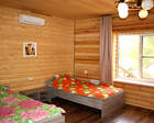 Номера и коттеджи базы отдыха очень уютны и рассчитаны на различное количество человек. Желающие могут поселиться в одном из вагончиков с верандой.