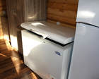 Туалет, умывальник, душ, холодильник, телевизор на веранде. Морозильный ларь на 150 литров.