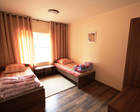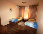 Второй этаж: прихожая, большая комната, три кровати, кондиционер, холодильник и морозильный ларь.