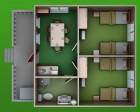3 спальни, рассчитан на проживание 6-ти человек и 4 дополнительных мест (душевая кабина, умывальник, WC, биде). Меблирован, кондиционер, холодильник, спутниковое ТВ и полный городской комфорт.