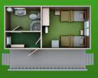 Три односпальные (свдвигаемые) кровати (душевая кабина, умывальник, WC), а также холодильник, кондиционер, спутниковое ТВ.
