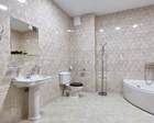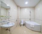 Площадь 100 кв.м. В номере: двухместная и полутороспальная кровати с прикроватными тумбами, рабочая зона, бра, стул, пуф, зеркало, журнальные столики, 4 кресла, диван, туалетный столик, книжный шкаф с книгами, кабельное или цифровое ТВ, телевизор, телевизор, Wi-fi, холодильники, телефоны, фены, сейф, мини-бар, кухня с посудой, плитой, микроволновой печью, холодильником, кондиционеры. В прихожей: панель с зеркалом и вешалками, багажница, шкаф, вешалка, 2 ванные комнаты с ванной, косметическое зеркало.