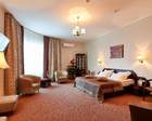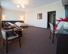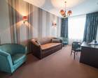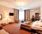Площадь 60 кв.м. В номере: двуспальная кровать и прикроватными тумбами, рабочая зона, бра, стул, пуф, зеркало, журнальный столик, 2 кресла, диван, туалетный столик, книжный шкаф с книгами, кабельное или цифровое ТВ, телевизор, Wi-fi, холодильник, телефон, фен, сейф, мини-бар, кондиционер. В прихожей: панель с зеркалом и вешалками, багажница, шкаф, вешалка для верхней одежды. Ванная комната с ванной или душем, косметическое зеркало.