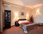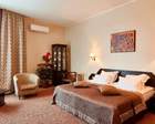 Площадь 30/40 кв.м. В номере: двуспальная кровать с прикроватными тумбами, рабочая зона, бра, стул, пуф, зеркало, журнальный столик, полукресла, кабельное или цифровое ТВ, телевизор, Wi-fi, холодильник, телефон, фен, мини-бар, кондиционер. В прихожей: панель с зеркалом и вешалками, багажница, шкаф. ванная комната с душем или ванной, фен.