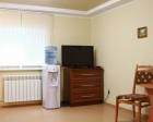 В коттеджах спальня с двуспальной кроватью и гостинная с раскладывающимся двуспальным диваном, телевизором, спутниковым тв; оборудованная мини кухня (холодильник, микроволновая печь, электрический чайник, набор необходимой посуды); ванная комната: душевая кабина, комплект полотенец, банные халаты, постельное белье на всех гостей; зимняя веранда с большим обеденным столом и стульями.