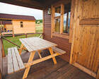 Для маленьких гостей предусмотрена детская площадка с качелями и песочницей. Взрослые могут посетить спортивную площадку или русскую баню на дровах.