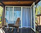 Формат питания здесь гибкий: кухня в номере, а на территории есть место для пикника, беседки и мангалы, что удобно для самостоятельной готовки и отдыха на свежем воздухе. Рядом также упоминаются кафе и продуктовый магазин, поэтому организовать питание на месте несложно.