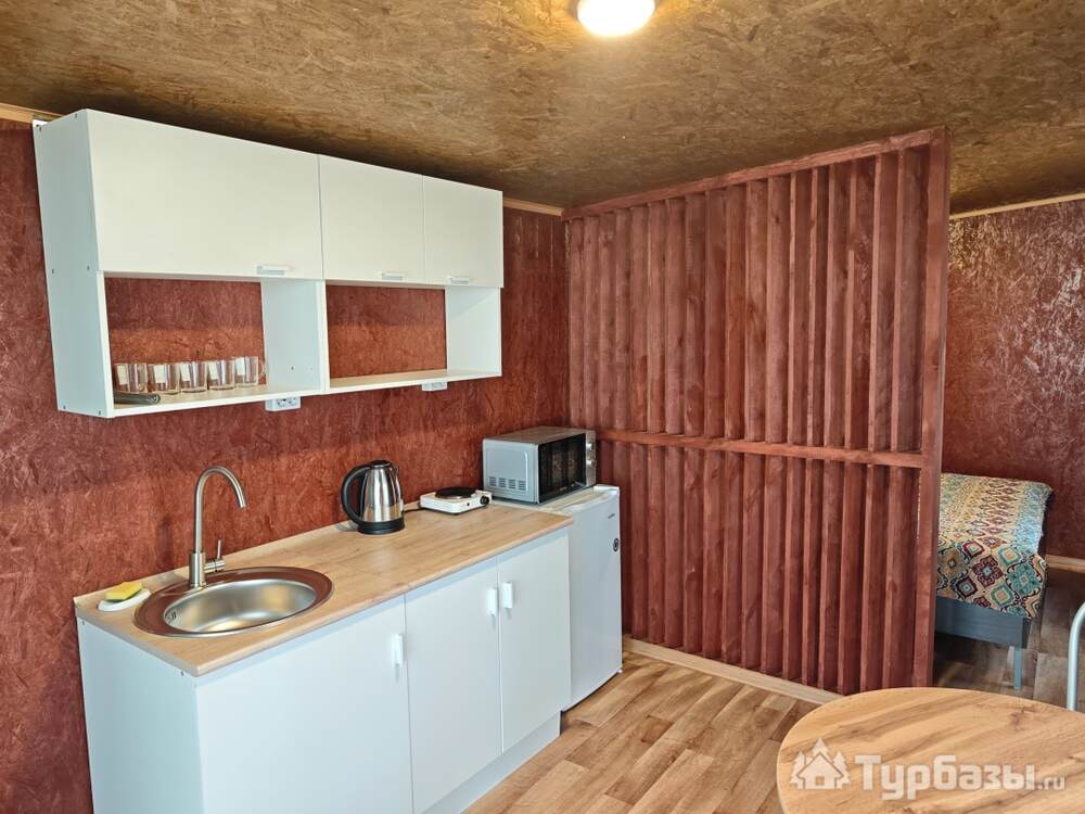 На базе предлагают номера разных категорий и форматы домиков для отдыха на озере Калды. Здесь есть как простые летние варианты, так и деревянные срубы; в части домов есть кухня, холодильник, микроволновка, горячая вода, посуда и тёплые санузлы, а у домиков есть террасы и мангальные зоны.