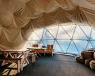 Проживают гости в купольных домах. В глэмпинге их 4. В куполе-стандарте панорамные окна, откуда открывается потрясающий вид на таежные пейзажи. Обстановка в домах-куполах уютная и комфортная. Мягкий диван манит в свои объятия, огонь в печке-камине дарит тепло.