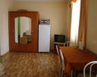В здравнице теплые уютные корпуса. Однокомнатные номера оборудованы для одного или двух посетителей. Есть двухкомнатные апартаменты повышенной комфортности, для двоих отдыхающих. Вместительность учреждения – 100 человек. Питание – меню на заказ.