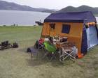 При размещении кемпинг-лагерем (свои палатка, кухня и. т. д.) + автомобиль, отдыхающие получают: право пользования душевыми кабинами, туалетами. Организация кемпинг-лагеря осуществляется в определенных местах на территории базы отдыха.