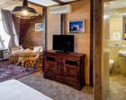 Отведать вкусные блюда национальной кухни гости могут в местном ресторане. Для гостей работает каминный и охотничий залы. Кроме этого работает бар.