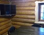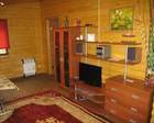 Двухэтажный рубленый домик. На первом этаже – большой стол на 15-20 чел, печь для приготовления различных блюд, шашлыков или просто для поддержания огня, кухонный гарнитур с комплектом посуды, муз. центр, панорамные окна с видом на реку. На втором этаже однокомнатный двухместный номер с двухспальной кроватью с ортопедическим матрацем, спутниковое ТВ, санузел с душевой кабинкой, вид на реку.