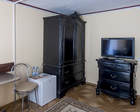 Во время отдыха на вилле надо предусмотреть самостоятельное приготовления пищи. Кухня – столовая находится в гостевом доме. Здесь же есть удобная терраса-столовая. На территории выделена зона для мангалов, барбекю, стоит уютная беседка. Есть баня-бочка, детская, автомобильная площадки, работает точка проката спортивного инвентаря, оборудован причал.