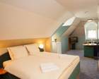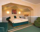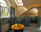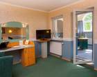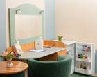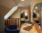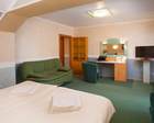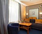 Номера класса полулюкс и люкс. Часть номеров имеет два этажа. В гостинице работает кафе, столики на 15 посадочных мест. Меню включает блюда русской и европейской кухни.